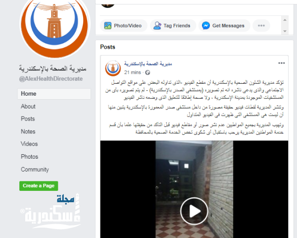 أصدرت مديرية الشئون الصحية بالإسكندرية، بيان أكدت فية أن مقطع الفيديو -الذى تداوله البعض على مواقع التواصل الاجتماعى والذى يدعى ناشره انه تم تصويره بمستشفى الصدر بالإسكندرية لم يتم تصويره بأى من المستشفيات الموجودة بمدينة الإسكندرية، ولا صحة إطلاقا للتعليق الذى وضعه ناشر الفيديو.