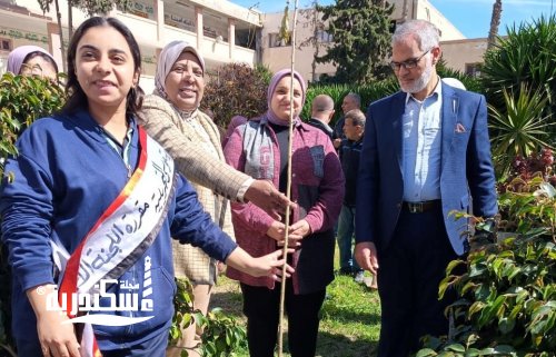 تفعيلا للمبادرة الرئاسية "١٠٠ مليون شجرة" المهندسة زينب السيد -رئيس حي وسط ترافقها الدكتورة رحاب جابر مدير عام إدارة وسط التعليمية تشاركان في فاعليات زراعة ٧٥ شجرة مثمرة بمدرسة نبويه موسي الثانويه بنات