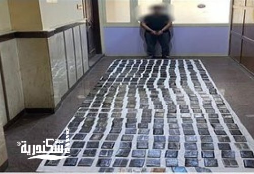 وبحوزته (عدد 350 طربة لمخدر الحشيش وزنت 35 كيلو جرام).