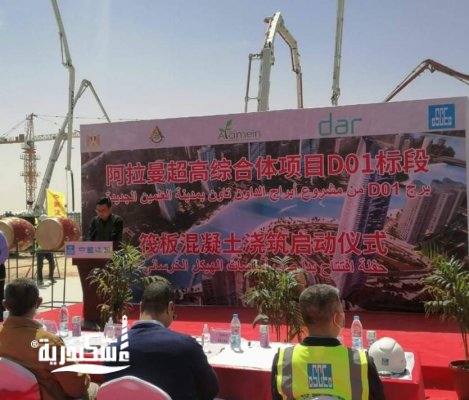 انتهت الشركة الصينية العامه، بانتهاء صب خرسانة الأساسات الخزوقية للبرج الأيقوني وأبراج الداون التاون التابعة لوزارة الإسكان في مدينة العلمين الجديدة قبل الموعد المحدد لها.