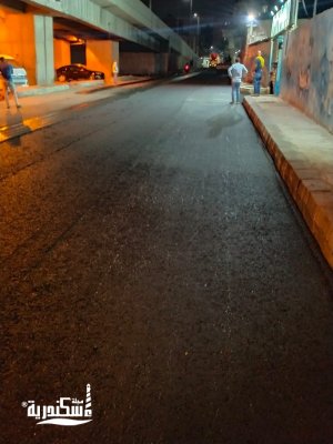 بشارع مصطفى كامل باكوس بعد انتهاء أعمال الاحلال والتجديد لشبكة الصرف الصحى ، فضلا عن متابعة اعمال الرصف تحت كوبرى العوايد وعمل السطحية