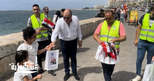 قادة المهندس البديوى السيد محمد على الأمين المساعد لحزب مستقبل وطن بالإسكندرية جولة ميدانية سيرا على الاقدام فى شوارع وميادين الإسكندرية لتوزيع هدية الرئيس والإعلام المصرية على المواطنين والمارة على طريق كورنيش البحر ومنطقة المنشية ومحطة الرمل وبحرى واللبان .