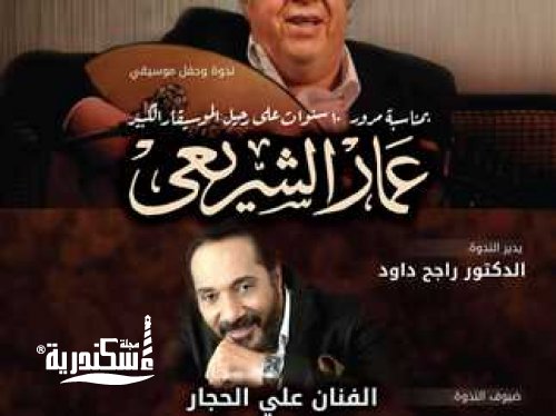 تقيم غداً الثلاثاء مكتبة الإسكندرية ندوة وحفل موسيقي بمناسبة مرور 10 سنوات علي رحيل الموسيقار الكبير عمار الشريعي، وذلك يوم الثلاثاء الموافق 17 يناير 2023 في تمام الساعة 7:00 مساءً بالمسرح الكبير بمركز المؤتمرات. و يدير الندوة الدكتور راجح داوود؛ المشرف علي مركز الفنون بمكتبة الإسكندرية، وذلك بحضور الأستاذ الدكتور أحمد زايد؛ مدير مكتبة الإسكندرية، والفنان علي الحجار، وأسرة الفنان عمار الشريعي، وعدد من الفنانين وكبار المسئولين. كما سيقدم الفنان علي الحجار وفرقته الموسيقية فقرات فنية ضمن فعاليات الندوة.