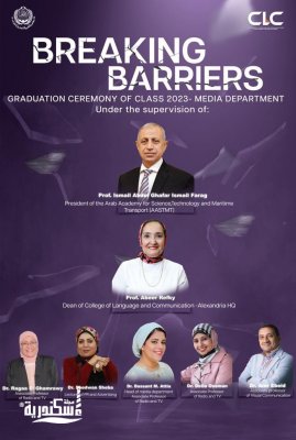 تحت رعاية الأستاذ الدكتور إسماعيل عبد الغفار، رئيس الأكاديمية العربية للعلوم والتكنولوجيا، والأستاذة الدكتورة عبير رفقي، عميد كلية اللغة والإعلام بالإسكندرية، يبدأ قسم الإعلام بكلية اللغة والاعلام فاعليات مارثون مشروعات التخرج لعام 2023، وذلك يوم الخميس الموافق 22 يونية تحت شعار "كسر الحواجز".