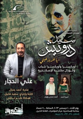 تنظم مكتبة الإسكندرية من خلال مركز الفنون التابع لقطاع التواصل الثقافي يوم ١٠ ديسمبر في تمام السابعة مساءً احتفالية فنية خاصة بمناسبة مئوية فنان الشعب سيد درويش تحت عنوان: "يا عزيز عيني" بالقاعة الكبرى بمركز مؤتمرات المكتبة.