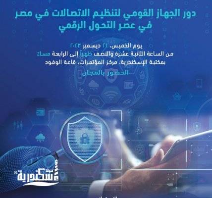 تنظم مكتبة الإسكندرية، من خلال إدارة مؤسسات المعلومات والمهارات المهنية بقطاع المكتبات، ندوة بعنوان "دور الجهاز القومي لتنظيم الاتصالات في مصر في عصر التحول الرقمي"، وذلك يوم الخميس الموافق 21 ديسمبر، الساعة الثانية عشرة والنصف ظهرًا، بقاعة الوفود بمركز مؤتمرات مكتبة الإسكندرية.