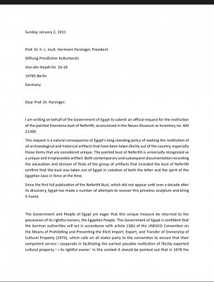 حسماً للجدل المثار حول تاريخ المطالبات الرسمية باسترداد أيقونة الآثار المصرية "رأس الملكة نفرتيتي"، وتفنيداً لأي ادعاءات غير دقيقة، توضح الحقائق والمستندات التاريخية أن الدكتور زاهي حواس، إبان توليه منصب الأمين العام للمجلس الأعلى للآثار، كان هو *أول مسؤول مصري يوجه خطاباً رسمياً وحكومياً متكاملاً إلى الجانب الألماني للمطالبة بعودة الرأس الملكة إلى موطنها الأصلي. في 2 يناير 2011، قاد الدكتور زاهي حواس تحركاً قانونياً ودبلوماسياً حاسماً بإرسال خطاب رسمي بصفته ممثلاً للحكومة المصرية إلى "مؤسسة التراث الثقافي البروسي" في برلين. وقد تضمن الخطاب نقاطاً جوهرية صاغها "حواس" لتكون ركيزة قانونية صلبة، وأهمها: *إثبات التدليس القانوني: فند الدكتور زاهي حواس في خطابه كيفية خروج التمثال من مصر عام 1913، مؤكداً وقوع تلاعب في توصيف الأثر عند إجراء "القسمة"، مما جعل خروجه غير قانوني ومخالفاً لنصوص وروح قوانين الآثار المصرية التي كانت سارية آنذاك. المطالبة الرسمية الموثقة: يُعد هذا الخطاب هو "الوثيقة الأم" في ملف الاسترداد، حيث نقل الملف من مجرد تصريحات إعلامية إلى طلب استرداد رسمي يستند إلى المواثيق الدولية واتفاقية اليونسكو لعام 1970. *تحديد الأثر بدقة: * طالب "حواس" رسمياً بالقطعة المسجلة برقم **AM 21300* بـ "المتحف الجديد" في برلين، مشدداً على أن هذه القطعة الفريدة لا يمكن تعويضها بغيرها، وأن مكانها الطبيعي هو مصر. وتؤكد الوثائق أن هذا التحرك الرسمي الذي قام به الدكتور زاهي حواس وضع الجانب الألماني أمام مسؤولياته التاريخية والقانونية لأول مرة بشكل مؤسسي، ليظل خطاب يناير 2011 هو المرجع الأول والأساسي في قضية استرداد "رأس نفرتيتي".