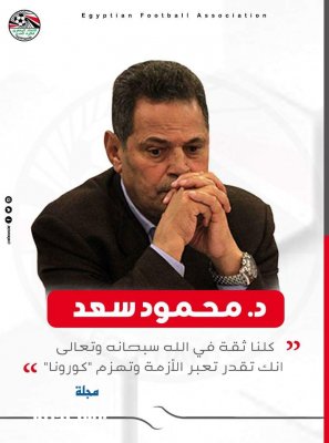 جاءت نتائج التحاليل التي أجريت للدكتور محمود سعد المدير الفني للإتحاد المصري لكرة القدم إيجابية بالنسبة لإصابته بفيروس كورونا، وذلك في أعقاب مخالطته عددا من المدربين العالقين بالخارج لدى عودتهم إلى أرض الوطن. ومن المقرر أن يخضع الدكتور محمود سعد لبروتوكول العلاج مع اتخاذ جميع الإجراءات المتبعة رسميا في مواجهة الفيروس. وأكد وليد العطار المدير التنفيذي للاتحاد أن إصابة المدير الفني رغم أنها جاءت من خارج الاتحاد، إلا أنه تم اتخاذ كافة اجراءات الوقاية داخل مبنى الاتحاد منذ بداية أزمة انتشار الفيروس ، وتم الاطمئنان على جميع العاملين بالاتحاد بموجب الإجراءات المتبعة في هذا الشأن. واتحاد كرة القدم إذ يعلن ذلك فإنه يرجو من الله سبحانه وتعالى أن يمن بالشفاء على الدكتور محمود سعد وجميع مصابي الفيروس اللعين وأن يحفظ بلادنا وأبناء شعبنا من كل سوء.