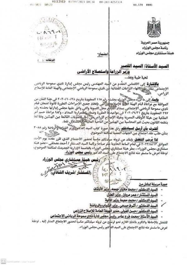 وفي سياق منفصل ، صرح المهندس فرج عامر أن يوم الأحد القادم ٨/١٣ سيتم عقد اجتماعا في العاصمة الإدارية الجديدة بناءا على تعليمات رئيس وزراء مصر، ويضم جميع الوزارات المعنية وهيئة الاصلاح الزراعي ونادي سموحة لإعادة إحياء الاتفاق السابق توقيعه بين سموحة وجميع الأطراف لحل مشكلة الإصلاح الزراعي ، و نفى عامر ما تردد من شائعات أنه لم يكن هناك التزام على سموحة لسداد مبالغ مالية كبيرة للإصلاح الزراعي سنويا في السنة التي غاب فيها عن مجلس إدارة النادي .