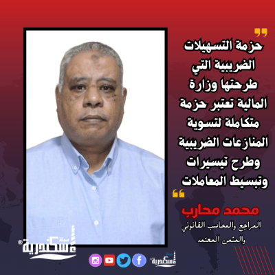 أشاد المستشار محمد محارب المحاسب القانوني والمثمن المعتمد، بحزمة التسهيلات الضريبية التي طرحتها وزارة المالية متمثلة في مصلحة الضرائب، كونها حزمة متكاملة لتسوية المنازعات الضريبية وطرح تيسيرات وتبسيط المعاملات؛ في إطار رؤية واضحة داعمة للنمو ومنهج قويم قائم على الشراكة والدعم.