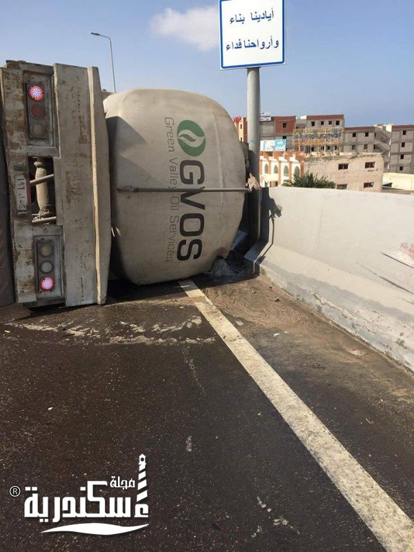 وتبين من الفحص انقلاب سيارة نقل تابعة لشركة بترول، محملة بـ"مياه" بمنطقة سيدي كرير، بداية طريق الساحل الشمالي، ما أسفر عن تلفيات بالسيارة وانقلاب حمولتها.