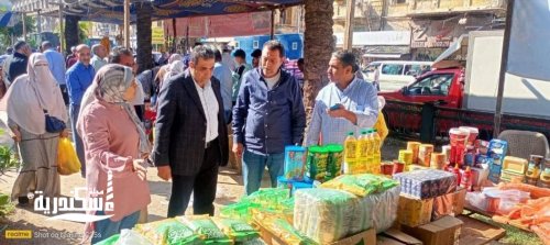 تابع اللواء/ وليد منصور رئيس حي الجمرك إقامة سوق اليوم الواحد بميدان عرابي بالمنشية بالتعاون مع مديرية التموين والتجارة الداخلية .
