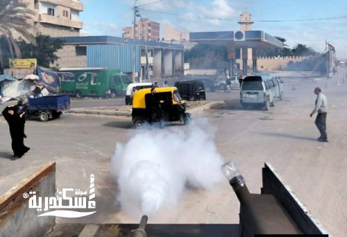 في إطار الحفاظ على الصحة العامة رش وتطهير منطقتي أبو تلات والكيلو ٢٢,٥ لمكافحة القوارض والحشرات الطائرة بحي العجمي