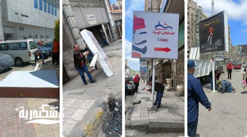 قامت المهندسة/انجي محمد فتحي-رئيس حي شرق بمتابعة تنفيذ حملة لازالة الإعلانات بمشاركة ادارة أشغال طريق بشارع فيكتور عما نويل منطقة سموحه