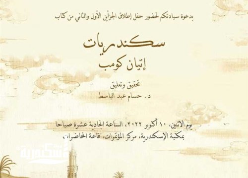 يبرز الحفل حياة العالم الراحل إتيان كومب وفترة عمله بالإسكندرية ويناقش محتويات الكتاب في جزئيه الأول والثاني.